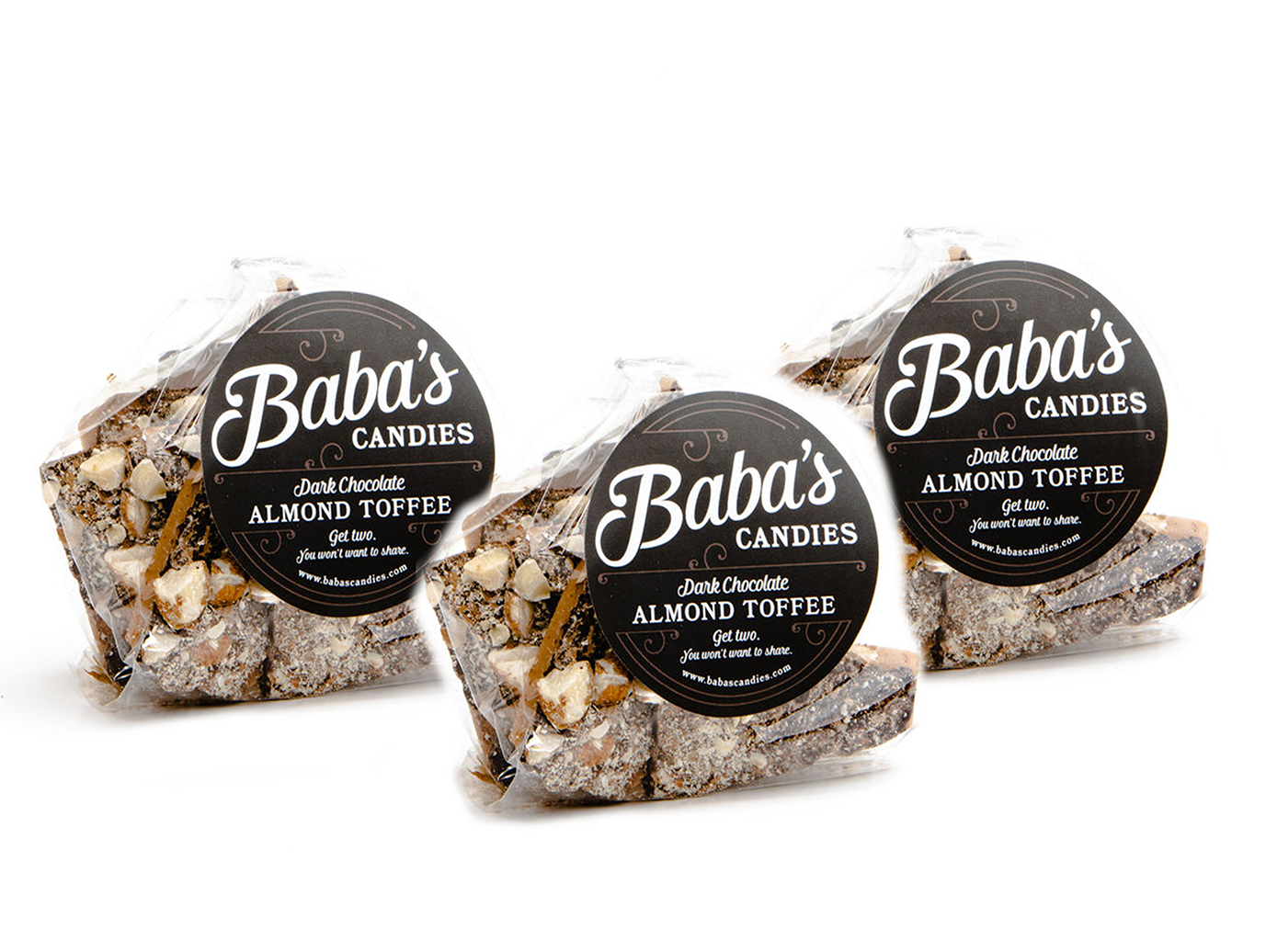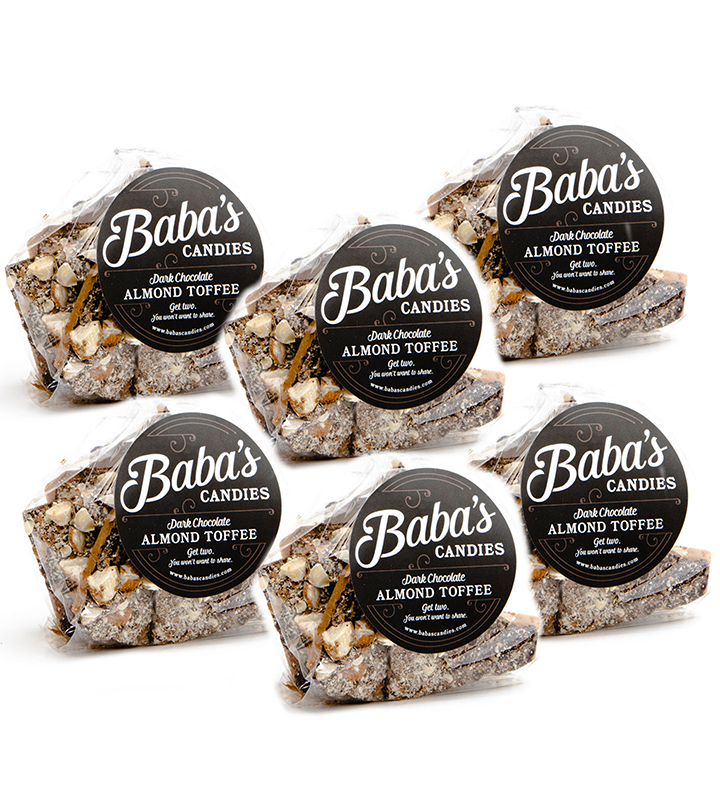 There is no shortage of almonds here! Made only with REAL butter and pure cane sugar, infused with chopped almonds, this satisfyingly crunchy, melt-in-your-mouth almond toffee is topped with just the right amount of premium dark chocolate (63%+ cacao), and more crushed almonds. As always, made with love by Baba herself!